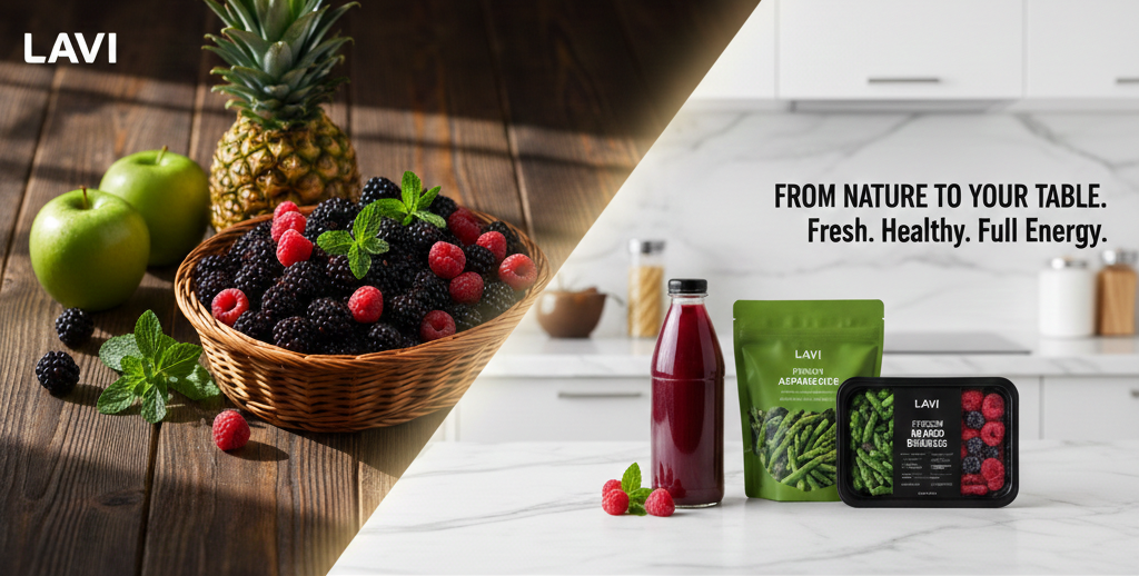 Premium fruit juices, nectars, and carefully preserved frozen foods crafted to retain authentic taste, nutrition, and global quality standards.